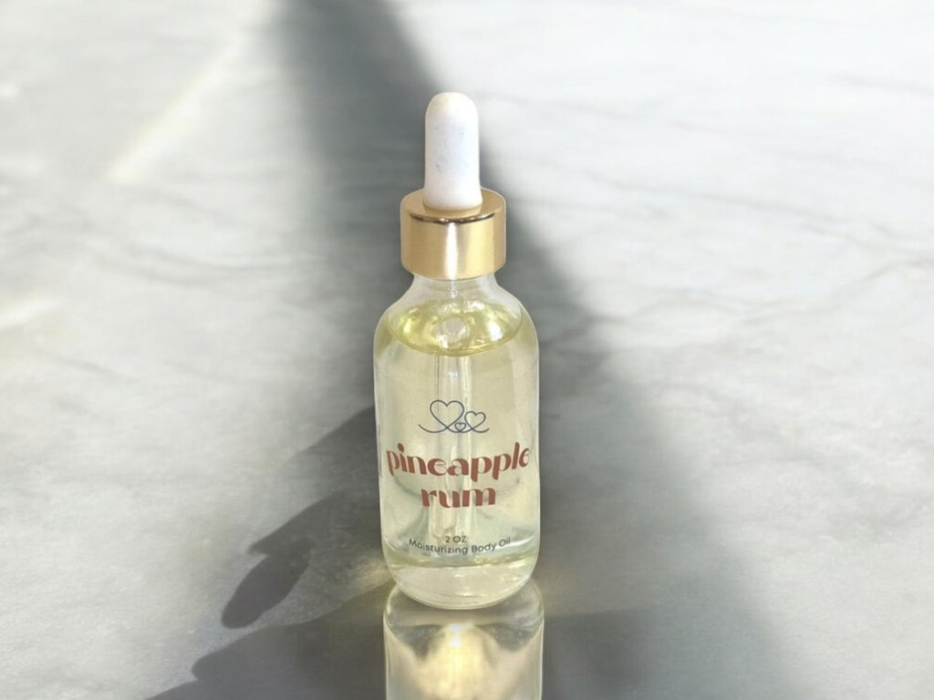 Experience a warm and tropical escape with our Pineapple + Rum Moisturizing Body Oil. This scent blend will transport you to paradise while nourishing and moisturizing your skin. A must-have for those seeking a fresh and fruity scent for their skincare routine!