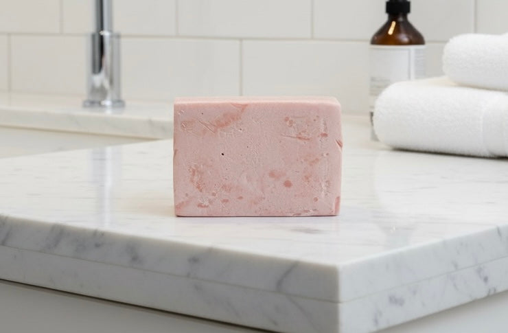 Rose and calamine combine in this gentle facial bar, can help to calm irritated skin and reduce redness. Calamine's soothing properties work alongside rose's natural antioxidants to cleanse without stripping your skin. This bar dissolves smoothly and leaves skin feeling refreshed and balanced. An alternative to liquid cleansers that respects the skin's natural moisture barrier.