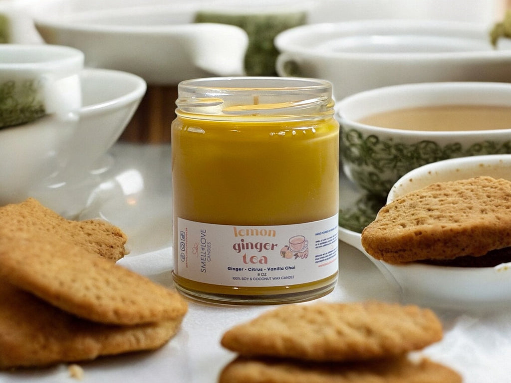 Experience the uplifting blend of Lemon Ginger Tea, where zesty citrus meets the warm spice of ginger and the creamy sweetness of vanilla chai. This candle creates a cozy, invigorating ambiance perfect for relaxing moments or refreshing your space with a bright, soothing aroma. Let its vibrant scent awaken your senses and bring a comforting charm to any room.