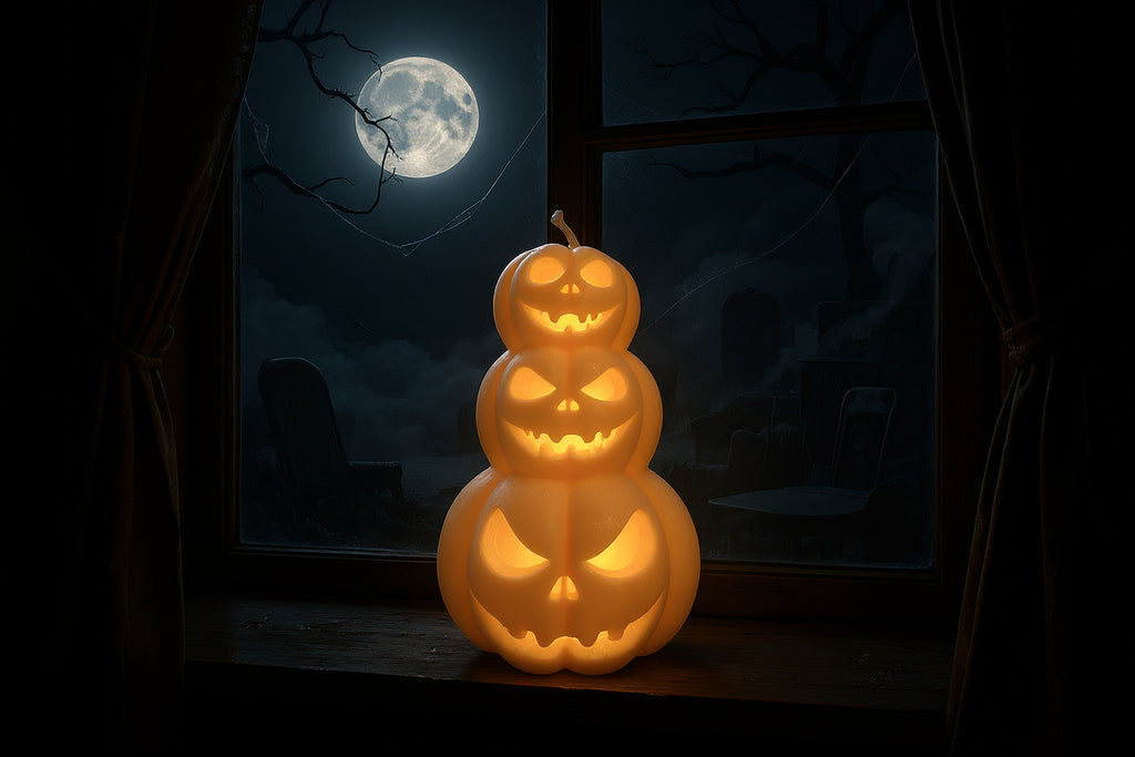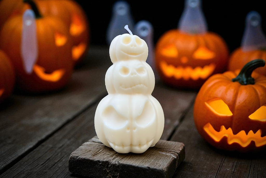 Elevate your Halloween ambience with our Triple Pumpkin Soy Candle—a festive stack of pumpkins that’s as charming as it is cozy. This seasonal favorite doubles as both décor and candlelight, bringing warm autumn vibes to mantels, tablescapes, or spooky displays.