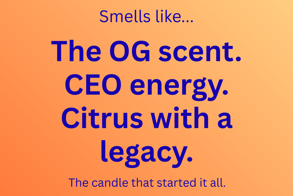 This orange colored candle is infused with natural essential oils, including bergamot. It's an orange scented candle with full-bodied notes of bergamot and grapefruit fused with an herbal bouquet. It embodies everything about the color orange and the fruit since it is our CEO's favorite candle.